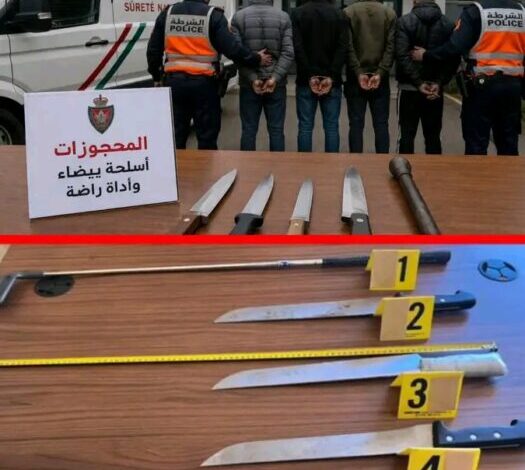 وأسفرت عمليات التدخل والتفتيش عن حجز مجموعة من الأدوات التي يُشتبه في استخدامها في هذه الأفعال الإجرامية، من بينها أربعة أسلحة بيضاء وأداة راضة، ما يعكس طبيعة العنف الذي رافق هذه الجرائم.