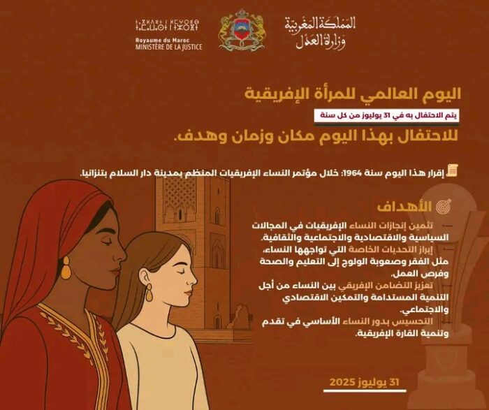 يحتفل المغرب إلى جانب دول القارة الإفريقية في 31 يوليوز من كل سنة باليوم العالمي للمرأة الإفريقية، وهو موعد سنوي يرمي إلى إبراز نضالات النساء في إفريقيا وتسليط الضوء على أدوارهن الريادية في التنمية السياسية والاجتماعية والثقافية.وزارة العدل المغربية انخرطت بدورها في إحياء هذا اليوم، مؤكدة عبر منشور رسمي على رمزية المرأة الإفريقية كقوة ناعمة ساهمت ولا تزال في بناء مجتمعات أكثر عدالة واستقرارا. المناسبة تشكل فرصة لتثمين إسهامات النساء في القارة، من شمالها إلى جنوبها، في ميادين التعليم، الصحة، الحكم الرشيد، وريادة الأعمال.وقد تم اعتماد هذا التاريخ لأول مرة خلال مؤتمر النساء الإفريقيات سنة 1964 بمدينة دار السلام في تنزانيا، حيث تم الاتفاق على جعله موعدا قارّا لتكريم النساء الإفريقيات وإبراز أدوارهن في النهوض بالقارة.وتؤكد الوثائق الرسمية أن من بين أهداف هذا اليوم تعزيز التضامن بين النساء، وتقوية المشاركة في بناء المستقبل الاقتصادي والسياسي، والدفع نحو إرساء عدالة قائمة على المساواة وكرامة الإنسان.من المغرب إلى باقي أرجاء القارة، تستمر المرأة الإفريقية في رفع راية الصمود والإبداع، حاملة معها طموحات أجيال من أجل التغيير والتقدم.