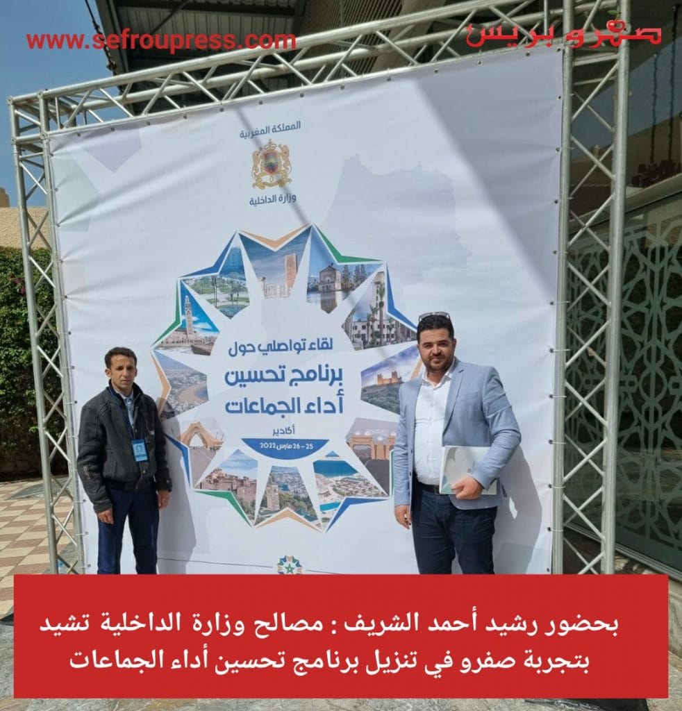شارك رشيد أحمد الشريف النائب الأول لرئيس جماعة صفرو في أشغال لقاء تواصلي حول برنامج تحسين أداء الجماعات والذي افتتحت أشغاله يوم أمس الجمعة بأكادير، وذلك بحضور ممثلي الجماعات المستهدفة وباقي الشركاء المعنيين.