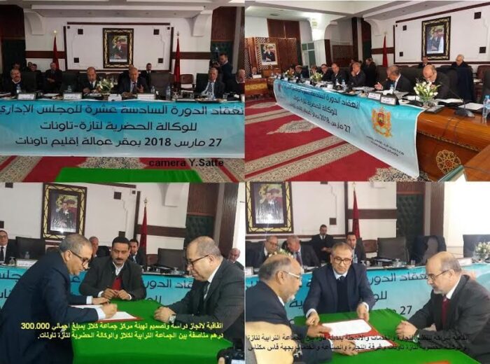 احتضنت القاعة الكبرى لعمالة اقليم تاونات يوم الثلاثاء27مارس2017 المجلس الاداري للوكالة الحضرية لتازة تاونات في دوتها السادس عشر تحت رئاسة السيد عبد الغني ابوهانئ ،المفتش العام لقطاع إعداد التراب الوطني والتعمير بالنيابة عن السيد عبد الأحد فاسي فهري وزير إعداد التراب الوطني والتعمير والإسكان وسياسة المدينة. وحضره كل من عامل إقليم تاونات والكاتب العام للعمالة ورئيس المجلس الإقليمي لتاونات ورئيس المجلس الإقليمي لكرسيف ورئيس المجلس الإقليمي لتازة وبعض رؤساء مصالح خارجية وعدد من رؤساء الجماعات الترابية بكل من تاونات وتازة ورئيس غرفة التجارة والصناعة لفاس.