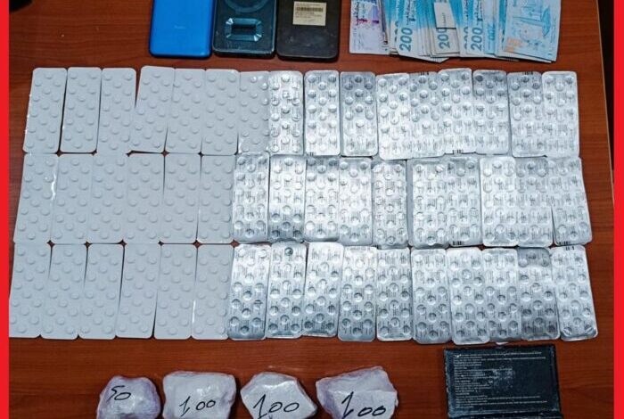 وجرى توقيف المشتبه فيهم بأحد أحياء مدينة مراكش، وهم في حالة تلبس بممارسة هذا النشاط الإجرامي، حيث أسفرت عملية الضبط والتفتيش المنجزة عن حجز 1155 قرصاً مخدراً من نوع “ريفوتريل”، و350 غراماً من مخدر الكوكايين، إلى جانب ميزان إلكتروني يُستعمل في وزن المخدرات، ومبلغ مالي يُشتبه في كونه من عائدات الاتجار غير المشروع.