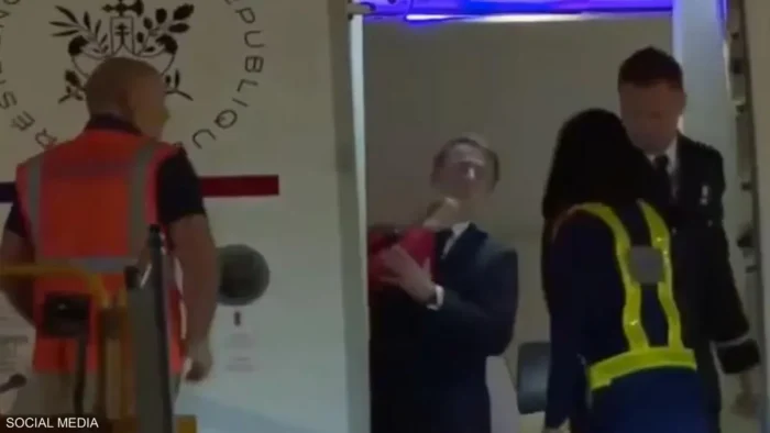 وتُظهر اللقطة، التي انتشرت بسرعة على الإنترنت، بريجيت ماكرون وهي تضع يدها على وجه زوجها أثناء نزولهما من الطائرة الرئاسية. هذا التصرف اعتبره عدد من المتابعين “صفعة”، ما فجّر موجة من التعليقات والتكهنات.