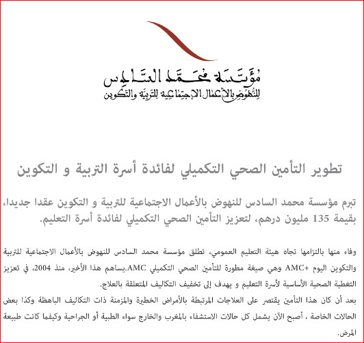 بشرى لأسرة التعليم …. مؤسسة محمد السادس تطلق تغطية صحية تكميلية
