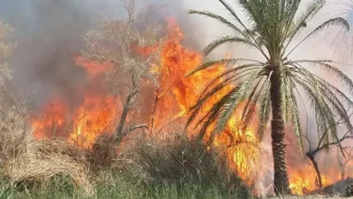 حريق مهول يأتي على أجزاء واسعة من واحة النخيل بقصر بوذنيب